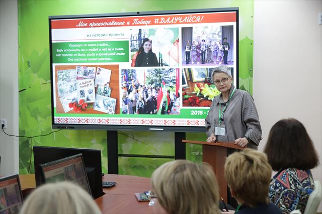О реализуемом уже десять лет в Белоруссии интернет-проекте «Мое прикосновение к Победе #ДАЛУЧАЙСЯ» рассказала одна из его авторов Алла Рыхлова. Одно из опорных направлений программы – челлендж-проект «История войны в истории моей семьи». В его рамках та или иная семья передаёт информацию о своих дедах и прадедах – участниках Великой Отечественной войны, создавая для него личный кабинет на специально созданном сайте. Там можно увидеть не только исторические данные о человеке, но и отношение к нему. Как правило, родственники пишут, как гордятся своим предком-воином. Обязательным условием участия в проекте является размещение ссылки на страничку ветерана-воина в соцсетях, на аккаунте кого-то их его потомков. Есть и довольно неожиданные, но очень приятные плоды патриотического воспитания. Так, при помощи неравнодушных «айтишников» создаются компьютерные игры на основе материалов об истории Великой Отечественной войны.