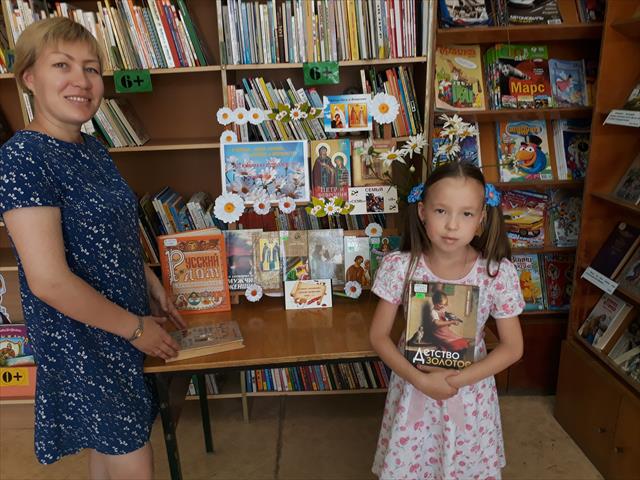 Познавательно-игровая программа праздника включала интереснейший рассказ библиотекаря о судьбе святых благоверных князей Петра и Февронии Муромских и о том, почему именно 8 июля в нашей стране почитают их память. С большим интересом ребята посмотрели мультфильм «Сказ о Петре и Февронии», приняли участие в обсуждении его содержания. Все желающие прочли стихи о семье, состязались в конкурсах «Семейная азбука», «Кенгуру», играли в «Ромашку счастья» и учились делать из бумаги символ Дня семьи, любви и верности – ромашку. Не осталась без внимания и привлекательная книжная выставка, подготовленная библиотекарями специально к этому празднику: новые книги, приобретенные библиотекой на средства гранта, заинтересовали и детей, и взрослых.