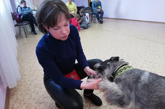 — В этом году удалось стать победителем в конкурсе малых грантов «Православная инициатива» с проектом «Мой друг – четыре лапы с хвостиком» и получить финансовую поддержку Фонда гуманитарных и просветительских инициатив «Соработничество». Благодаря этому мы смогли организовать на базе центра по работе с населением «Доверие» трехмесячный курс канис-терапии «Мой друг — четыре лапы с хвостиком» для детей с ограниченными возможностями, — рассказывает хабаровчанка. Занятия с четвероногими докторами в рамках проекта проходили дважды в неделю. Мы побывали на заключительном- музыкальном спектакле «Библейские истории», том самом, где ребята с нетерпением ждали окончания концерта, чтобы поиграть с хвостатыми. На первый взгляд, кажется ничего особенного: дети берут пса за поводок, ходят с ним по периметру зала, дают команды: «Рядом», «Вперед», «Лежать». На самом деле, за простыми движениям скрывается огромная работа.