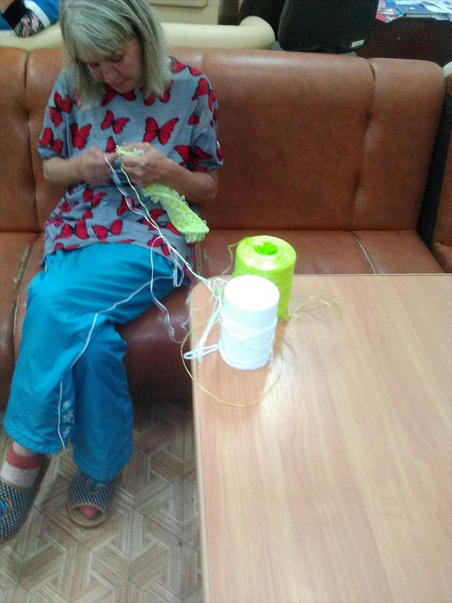 Для них приобрели швейную машинку, ткани, пропилен. Показали, как шить постельные принадлежности и вязать мочалки, чтобы они могли вернуть себе трудовые навыки.