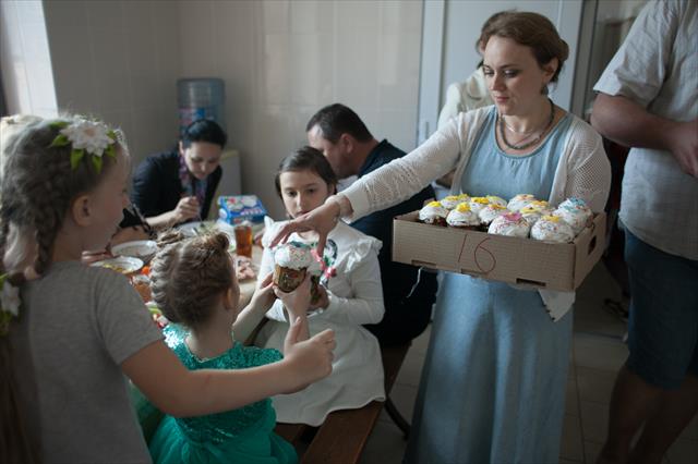 По окончании концерта в трапезной воскресной школы была накрыта праздничная пасхальная трапеза для детей воскресной школы и детей с особенностями развития. Всем присутствующим были вручены подарки от спонсоров мероприятия.