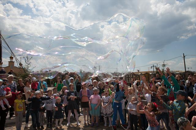 Последним номером программы было представлено шоу мыльных пузырей, которое вызвало восторг у маленьких зрителей.