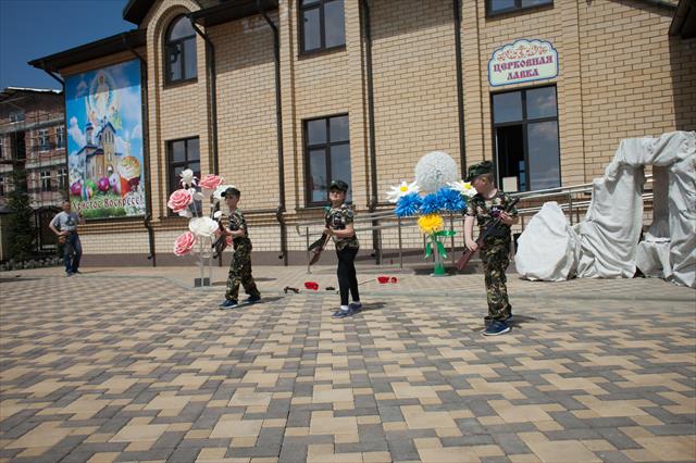 В программе мероприятия выступили юные воспитанники военно-патриотического клуба «Беркут», ведущего воспитательную работу среди детей при центре духовного просвещения Артемьевского храма, в составе молодежного движения «Православные витязи» Ставропольской и Невинномысской епархии.