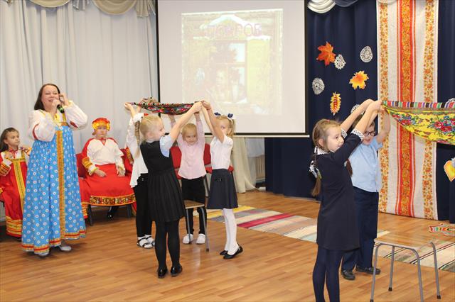 В рамках проекта 19 октября для учащихся начальной школы и их родителей была организована фольклорно-развлекательная программа «Покровские вечёрки».