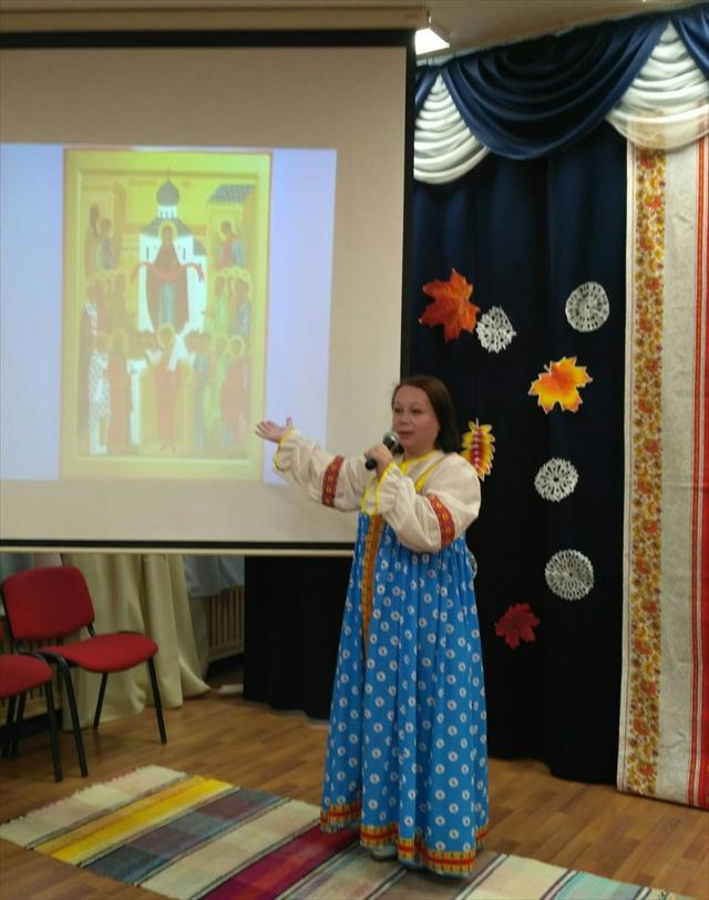 Во время мероприятия дети узнали о чудесном событии, которое произошло в 910 году в Константинополе, традиции и приметы праздника Покрова Пресвятой Богородицы. Воспитанники вокальной студии «Затея» поздравили всех стихотворениями и особым праздничным песнопением.