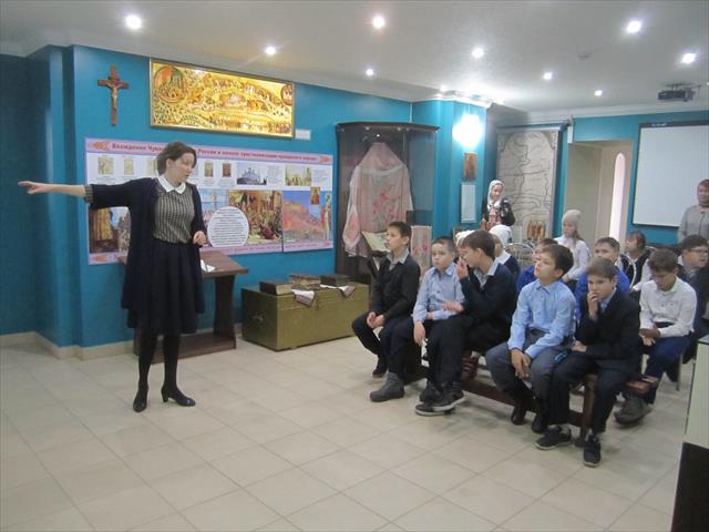 8 октября учащиеся Чебоксарской НОШ №1 для обучающихся с ОВЗ постоянные посетители Центра духовной поддержки детей и их родителей «МЫ ВМЕСТЕ», созданного в библиотеке – Центре семейного чтения им. М. Шумилова при поддержке Международного грантового конкурса «Православная инициатива 2017-2018» совершили экскурсию в Церковно-исторический музей Храма Новомучеников и исповедников Российских.