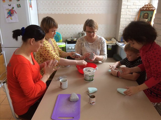 После того, как женщина поступает в приют, составляется пошаговая программа социальной реабилитации сроком от трех до шести месяцев. В это время ей оказывается социальная, бытовая, психологическая и духовная поддержка. Нам помогают психологи, священники и катехизаторы. Психолог приходит в приют два раза в неделю, проводит групповые и индивидуальные консультации. Обязательна трудовая и воспитательная составляющая! В приюте мы помогаем мамочкам обрести элементарные навыки шитья, обучаем рукоделию, рисованию, лепке совместно с детьми. Например, по заказу сестер милосердия из травматологической больницы №36 наши женщины сшили простыни.