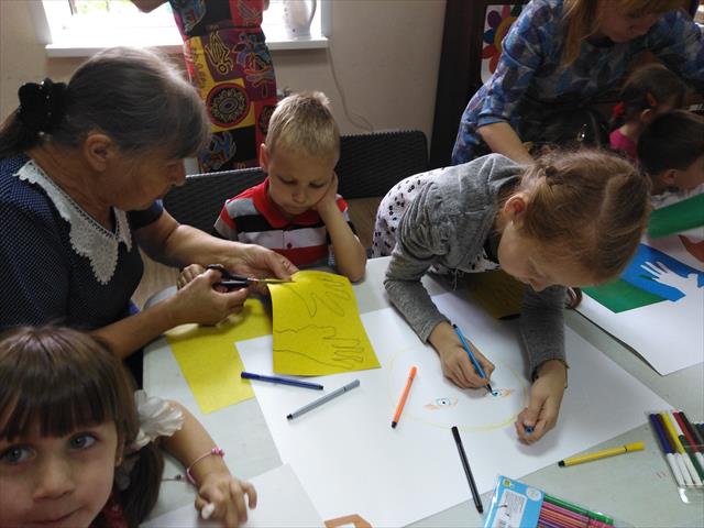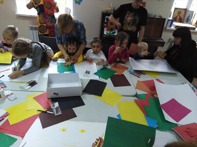Сменяя друг друга, свои таланты в искусстве вокала, изобразительного творчества, хореографии и музыкального исполнительства, представляли мальчики и девочки. Не отставали и взрослые – всем пришлись по вкусу румяные пирожки и золотистые, ароматные блинчики, которые с любовью приготовила для всех присутствующих добрейшая бабушка Лизы и Олеси! В зале постоянно звучали песни и мелодии, звонкий детский смех. В конце праздничной программы прошел замечательный мастер-класс по творчеству. Взрослые и дети собрались за одним большим столом и с неподдельным интересом и старанием, принялись создавать на листе ватмана с помощью цветной бумаги, фломастеров, клея и, конечно фантазии, небольшой герб своей семьи, в котором обязательно должны присутствовать ладошки всех её членов.