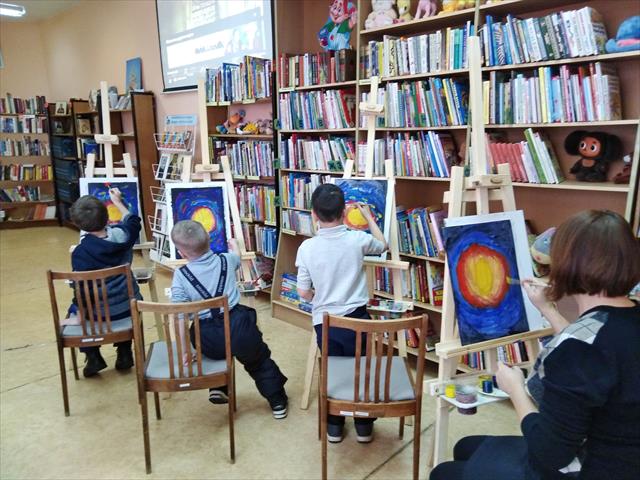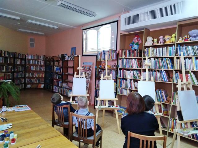 На протяжении всего мастер-класса Светлана Юрьевна поэтапно показывала детям на мольберте всю технику живописи акварелью «по-сырому».