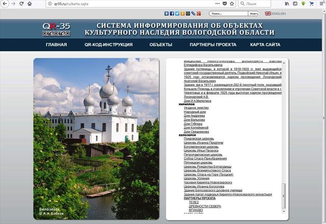 В рамках проекта «Храмы Белозерска: создание информационной системы с использованием интернет - технологий», победившего в Международном грантовом конкурсе «Православная инициатива – 2017–2018», проведена работа, которая, благодаря использованию возможностей Интернета и технологии QR-кодов, дала возможность найти систематизированную и выверенную информацию обо всех храмах Белозерска доступной огромному числу людей разных возрастов и социальных групп.