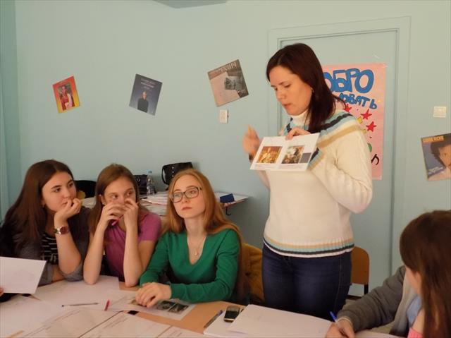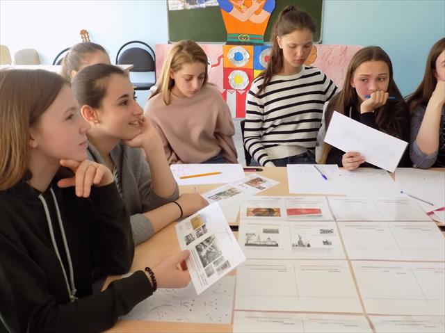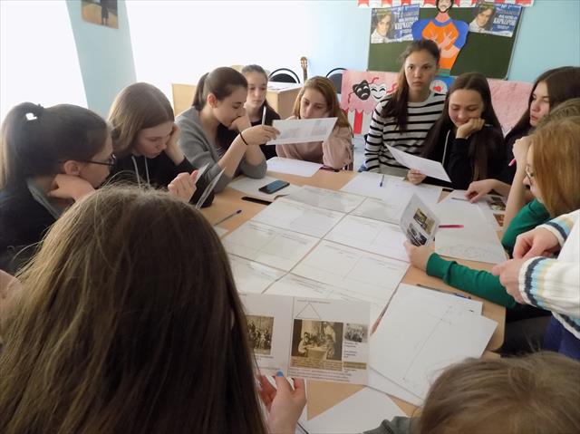 Два занятия из программы "Семейные АзБуки" в Профильной смене были продемонстрированы в качестве практических моделей работы с подростковой аудиторией. На занятие пришли активисты школьных музеев, точнее, активистки - девушки 12-16 лет из разных школ города, как оказалось, весьма осведомленные в истории страны (учащиеся школ №84, № 58, №25, №73, №74, №47, №43, №35). Первое занятие прошло в форме игры: девочки сравнивали картины мира советского и досоветского предков: высшие ценности дореволюционного и советского периодов, их влияние на ландшафт города, на повседневные занятия горожан, на дом (материал, масштаб, смысл), на семью - роли мужа, жены, ребенка. Несмотря на хорошие знания истории, разность ценностей советской и дореволюционной эпох, и, особенно, влияние этой разности на человека, его мировоззрение, семью произвело на игроков впечатление "новых ворот"... Пазлы-картинки "до" и "после" (революции, или "переворота" 1917 г.) были наглядны, скупы и громогласны: Бог - Вождь, Дом - Жилье, Глава - Герой, Жена - Герой, Сын - Герой... На втором занятии рисовали древо рода, в поколениях: нет, не 24, а 2-3; смотрели, как уменьшалось количество детей в поколениях, менялось ли вероисповедание, профессии (женщин). Говорили тихо, по душам. Активисты были похожи ... не на себя.