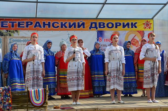 Старинные народные песни исполнил фольклорный ансамбль "Волюшка», где также занимаются пожилые люди. Благодаря их творческому вкладу, для детей и молодёжи открываются красота и мудрость православных традиций.