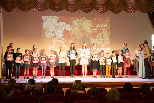 На праздничном концерте, подготовленном силами воспитанников ПВПГ " Форпост" и участниками " Школы актива " Навигатор" прозвучали военные песни и стихи в исполнении ребят-сочинителей, занявших призовые места. Все зрители получили в подарок песенники военных песен и имели возможность петь вместе с артистами. В начале концерта ребята очень волновались: нечасто приходится выступать перед такой многочисленной аудиторией. Но когда зрительный зал встал при исполнении песни " Вставай, страна огромная! ",- мы поняли, что нас слушают не строгие судьи, а наши единомышленники, которым дорога наша Победа и память о той войне. Отец Иоанн Славинский, заведующий ОРОиК Брянской епархии, обратился с собравшимся с приветственным словом, в котором подчеркнул, что подвиг фронтовиков и тружеников тыла, партизан и подпольщиков - это пример жертвенного служения ближним и Родине.