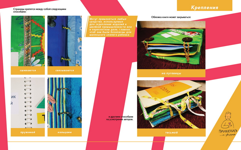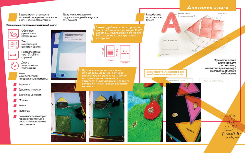 Пособие позволит детям, педагогам и всем неравнодушным самостоятельно создать тактильные книги, которые всегда необходимы маленьким читателям, имеющим ограничения по зрению.