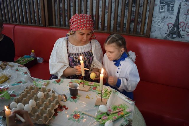 После торжественного открытия прошли мастер-классы, на которых все желающие могли изготовить пасхальные сувениры: украсить пасхальное яйцо, мастер- класс по росписи ложек, а также с большим удовольствием изготавливали пасхальные открытки.