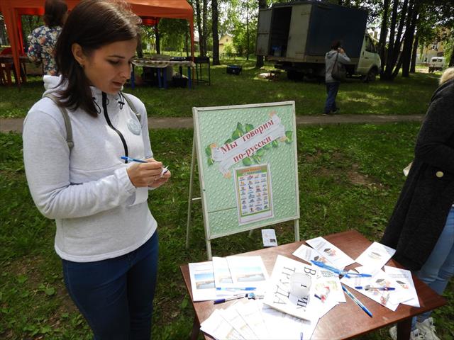 Урок русского языка для присутствующих провели работники центральной районной библиотеки им М.И.Ожегова, в программе праздника были викторина и настоящий русский хоровод.