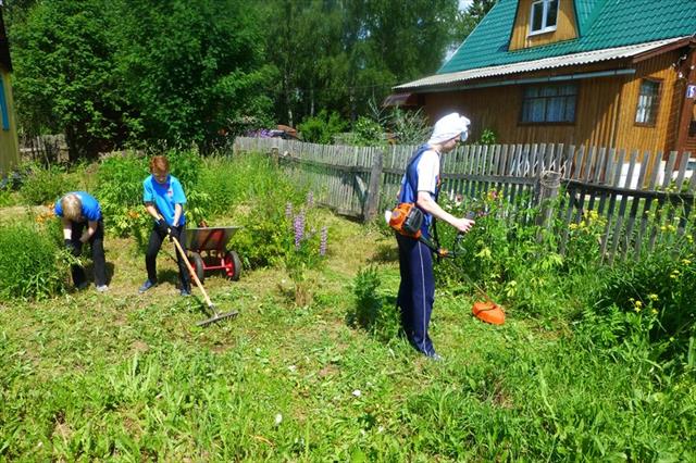 По завершении молебного пения ребята и настоятель храма принялись за работу. С Божьим благословением в погожий летний день православные добровольцы потрудились, действительно, на славу: пололи сорняки, собирали колорадских жуков, поливали грядки, собирали мусор, выкашивали поросшую траву, пилили дрова, прибирались на приусадебной территории, складывали поленницы. Как же были рады этой долгожданной помощи наши дорогие ветераны, да и ребятам было приятно приложить свои молодые силы для благого дела!