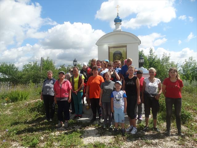Перед началом данного мероприятия отряд в составе 27 человек спустился за благословлением к Божнице в честь Казанской иконы Божьей Матери, установленной чуть в стороне от дороги по речному спуску. На этом месте прежде возвышался Храм Казанской Божьей Матери, построенный в 1799 году и разрушенного до основания в начале двадцатого века.