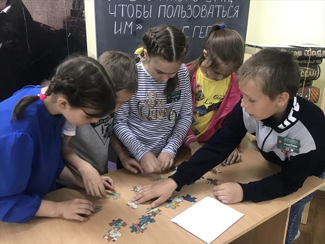 Ещё одно задание - «Собери картинку», тоже было посвящено сказкам А. С. Пушкина. Кроме этого, были такие задания, как «Крылатые выражения», где ребята объясняли значение фразеологизмов, и «Кто больше» - здесь из слова «Достояние» нужно было составить как можно больше других слов.