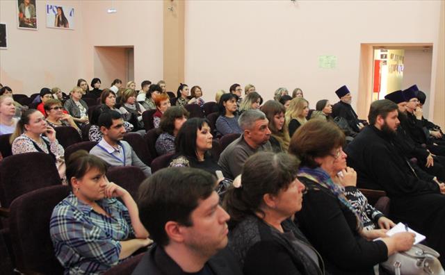 С приветственным словом к участникам обратилась, главный специалист по образовательным учреждениям МКУ «Отдела образования Железнодорожного района» Ольга Юрьевна Шумилкина, которая дала высокую оценку мероприятиям, проводимым Юго-Западным благочинием, направленным на оказание помощи общеобразовательным школам Железнодорожного района в вопросах духовно-нравственного воспитания. Таких как: поездки по святым местам Донского края, России для детей, родителей (в том числе из многодетных семей) и учителей общеобразовательных и воскресных школ, кинолекторий "Азбука православия", конкурс «Папа, мама, я – православная семья» и других.