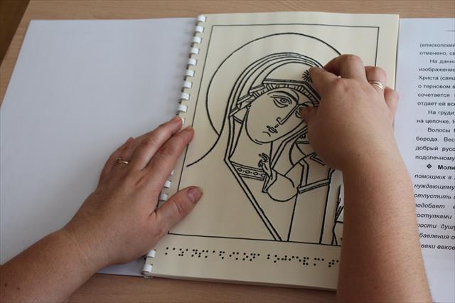 Издание включает в себя: книги рельефно-точечного, укрупненного шрифта, книгу в аудиоформате и альбом в рельефной графике о православных иконах.