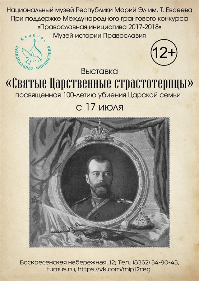 В рамках реализации проекта "Православие для всех" - создание православного культурно-просветительского Центра на базе филиала Национального музея Республики Марий Эл им. Т. Евсеева 17 июля, в Музее истории Православия прошло открытие выставки "СВЯТЫЕ ЦАРСТВЕННЫЕ СТРАСТОТЕРПЦЫ". Проект реализуется при поддержке конкурса «Православная инициатива 2017-2018».