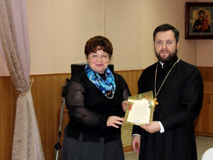 В рамках реализации проекта "Храни, Господь, очаг семейный!", получившего поддержку Международного грантового конкурса "Православная инициатива 2016 - 2017", в стационарном отделении социальной реабилитации женщин и детей Государственного учреждения социального обслуживания населения Тульской области "Кризисный центр помощи женщинам" прошло очередное занятие из кулинарного цикла, по окончании которого состоялась встреча с руководителем Добровольческого молодежного центра Тульской епархии, клириком Всехсвятского кафедрального собора диаконом Владимиром Мартыновым, приуроченная ко Дню празднования Казанской иконы Божией Матери и Дню народного единства.
