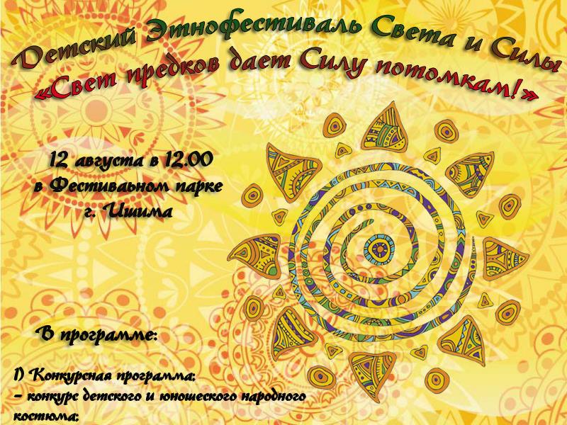 12 августа в городе Ишиме Тюменской области состоится детский этнофестиваль Света и Силы «Свет предков даёт силу потомкам».