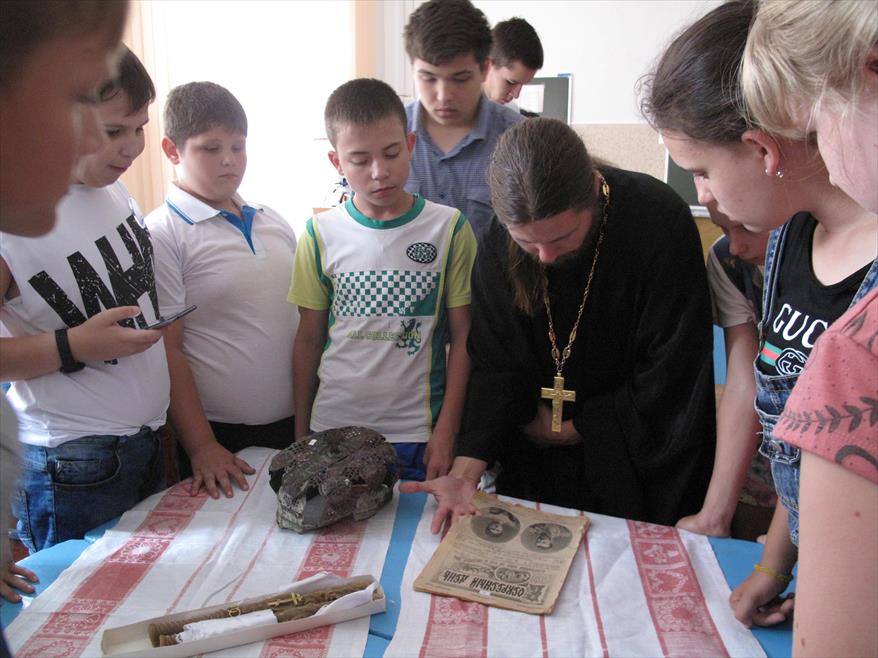 17 июля 2018 года в рамках проекта «Летний лагерь – Лаборатория археологических исследований», реализуемого при поддержке Международного грантового конкурса малых грантов «Православная инициатива -2018», состоялось аудиторное занятие «Царская семья Николая II – идеал православной семьи», а также круглый стол «Материалы – в книгу».